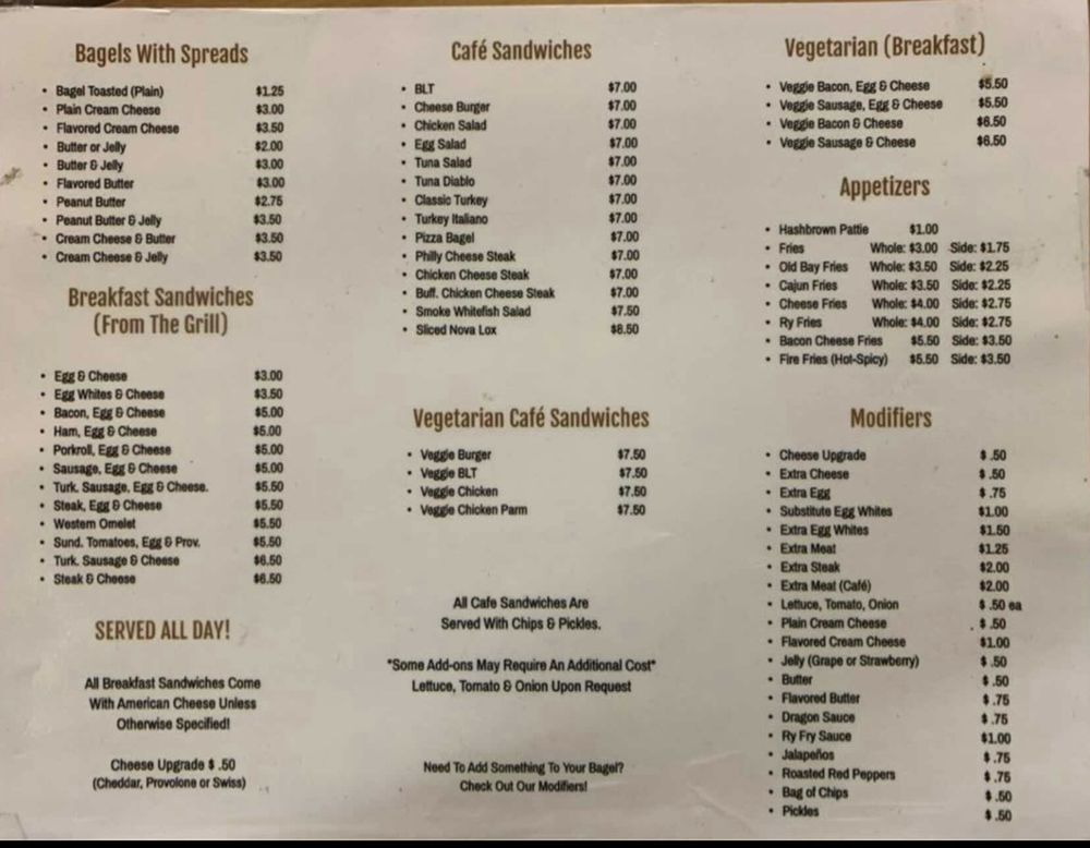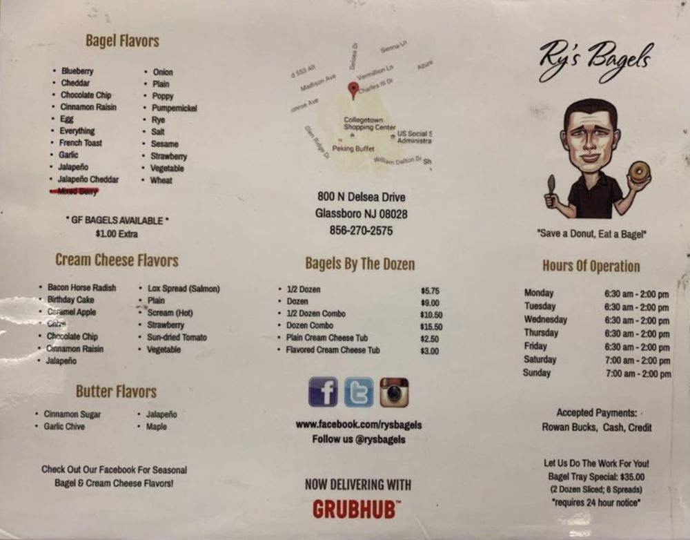 Introducing the menu at Ry’s Bagels, located in Glassboro, NJ, offers a variety of bagels with spreads like flavored cream cheeses, lox spread, and breakfast sandwiches such as bacon and cheese or steak and egg. Customers rave about the unique flavor choices like jalapeno cheddar and caramel apple cream cheeses, as well as the creative bagel combinations. The cafe sandwiches are also a hit, with options like BLT, buffalo chicken cheesesteak, and smoked whitefish salad. The relaxed atmosphere, wheelchair accessibility, and outdoor seating make it a great spot for groups or families. With options for delivery, takeout, and catering, Ry’s Bagels is a must-visit for bagel lovers seeking delicious and innovative flavors in a welcoming environment.